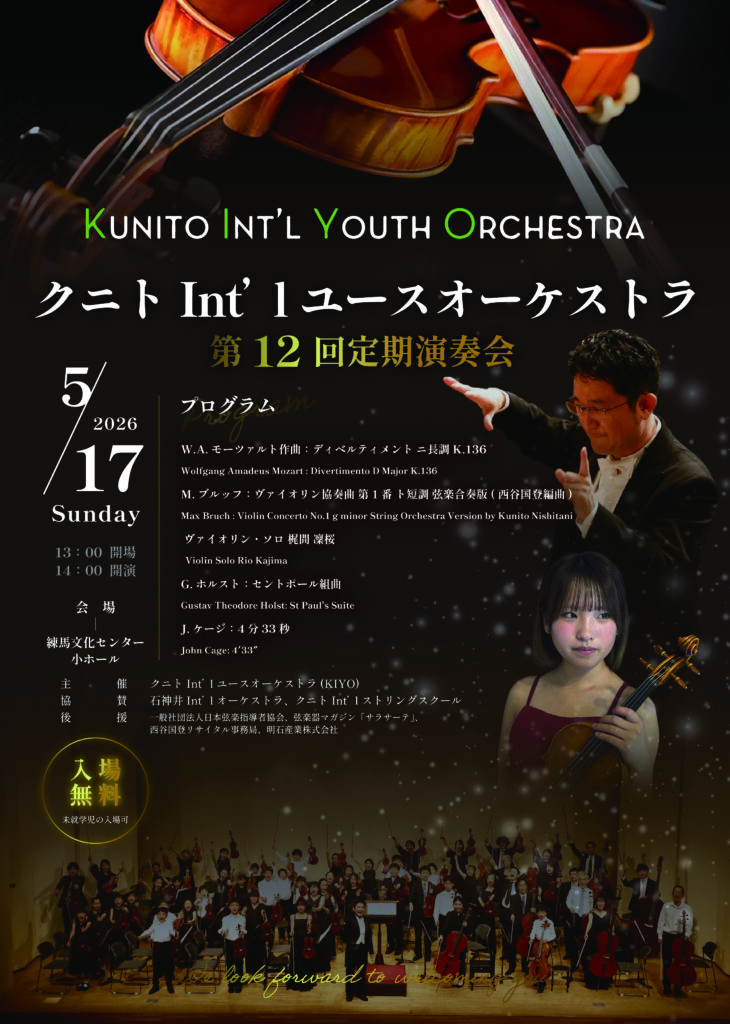 2026年5月17日(日)クニトInt’lユースオーケストラ第12回定期演奏会